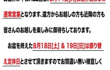 もうすぐやってくるお盆休み、毎年恒例ですがお盆はSHELTERは定休日無しでのALL通常営業、火曜日も12:00 ~ 20:00までALL OPENしておりますよ〜〜〜、お盆を終えた8月18日&19日は振り替え休日となっております、お間違いない様宜しくお願い致します。遠方からの方も近隣の方も、皆さんのお越しを楽しみにお待ちしております。