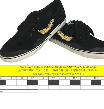 そして先月即完売してしまった話題のこちらCONSOLIDATED SKATEBOARDSが某有名SHOES BRANDに真っ向から喧嘩を売っているBS DRUNK4が遂にBLACKにカラーリングを変更し5月,6月頃に日本に入荷です、こちらも前回同様に完全受注生産のみとなりますので絶対に欲しいって方は2月16日までにお店までご予約をどうぞ〜〜〜、SHELTER WEB SHOPでもご予約を受け付けておりますので遠方の方は是非そちらよりどうぞ、ちなみに今回もハーフサイズの展開はございませんが9 1/2 & 10 1/2のみは展開がある様です、足が大きい方で欲しいって方は是非!!!真のスケーターマインドをお持ちでひねくれている方は是非!!!