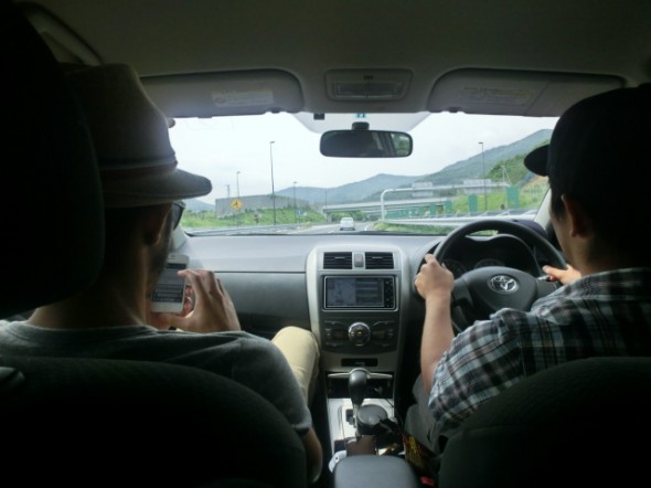 昼前にフィルマーHIDEとスペシャルゲストを迎え一路大阪へ向けて出発!