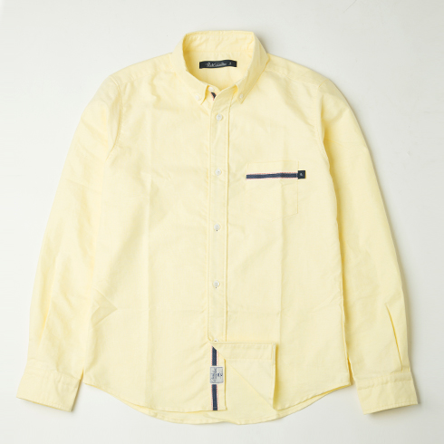 続いてこちらはOX BDシャツ。耳付きデニムのラインテープを前縦裏、カフス裏、