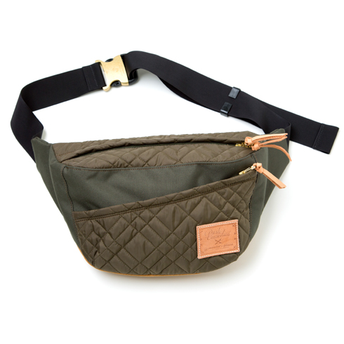 キルティングナイロンとレザーの組み合わせでカジュアルな