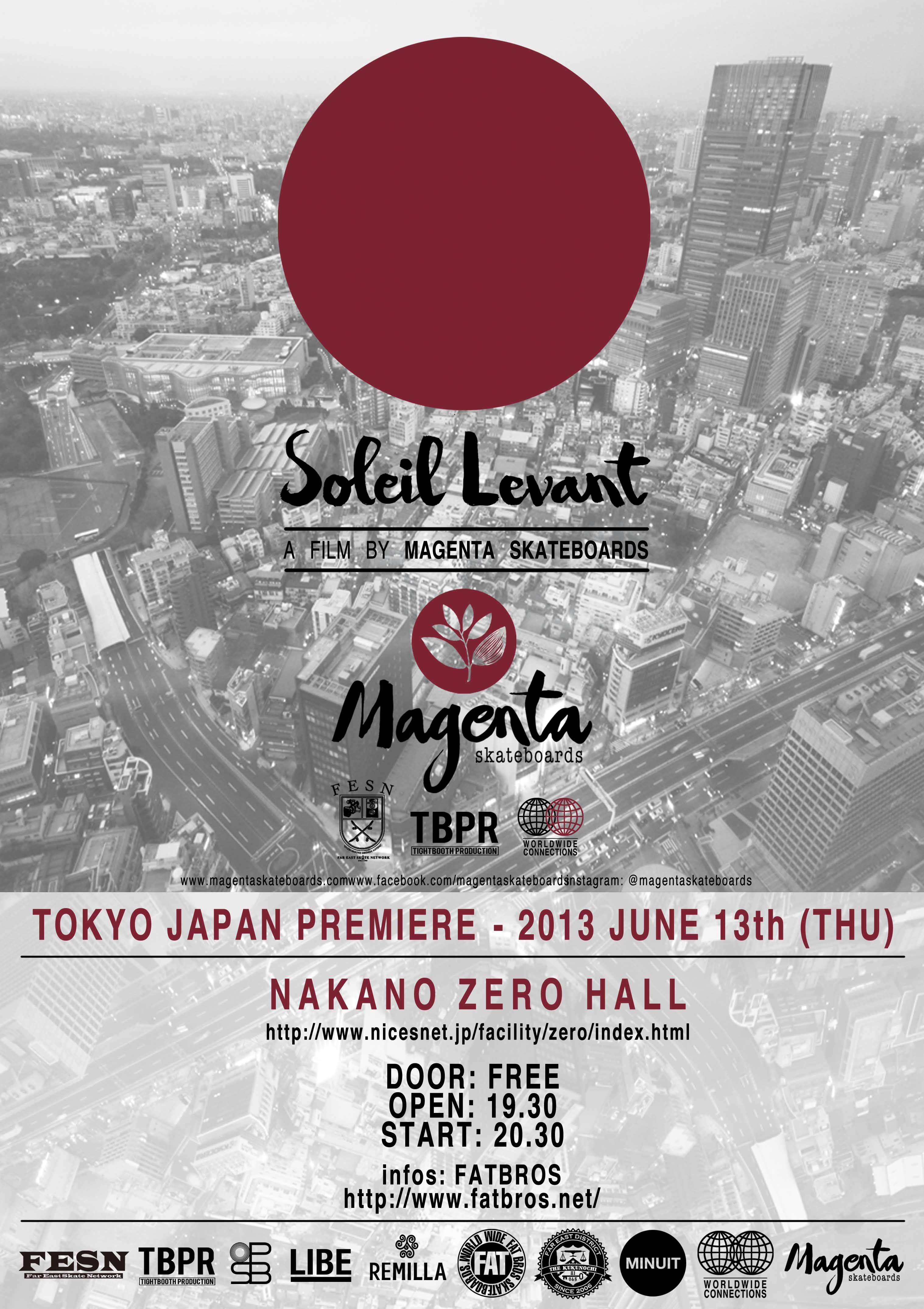 MAGENTA SKATEBOARDSが世界に向け発信するフルレングスビデオ、“SOLEIL LEVANT”(ソレイル・レヴァント)の東京試写会が6月13日に中野ゼロ・ホールにて行われます。