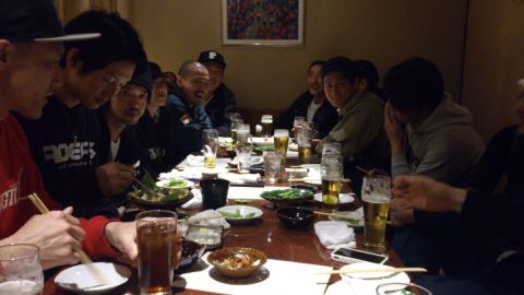 右隣の人は昔、僕の地元「中野」までスケボーしに来てくれたこともある広島のお守り的な人、宝田君。
