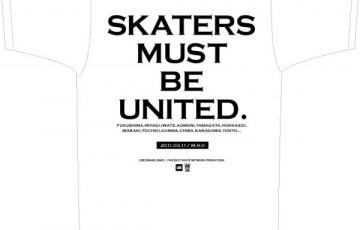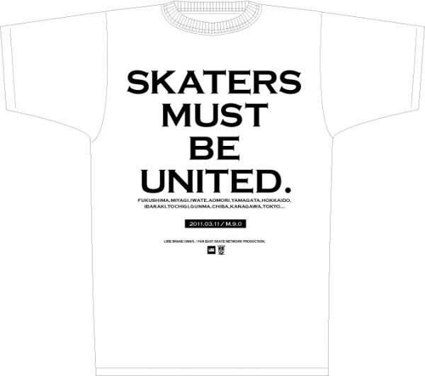 スケーターなら誰しもが簡単に起こせる行動。メッセージの載ったTシャツを着て外に出ること。そしてスケートをすること。このTシャツを1枚買うことで被災地の救援の手助けになります。このTシャツを着ることでスケーターとしてのメッセージが世の中に少しだけ伝わっていきます。被災地の皆さんに少しでも元気と、希望を与えられるように、皆様の御理解と御協力を宜しくお願い致します。