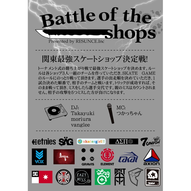 Resunce主催の関東のスケートショップ対抗S.K.A.T.E.ゲームも気付けば今週末。