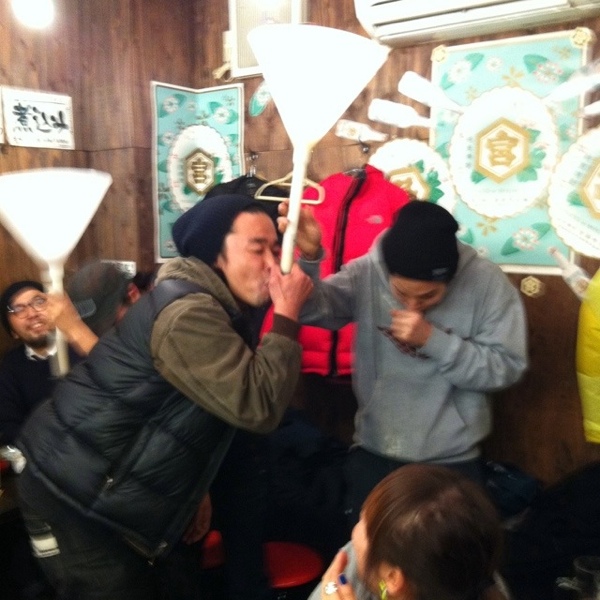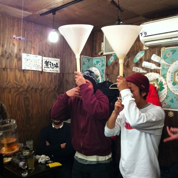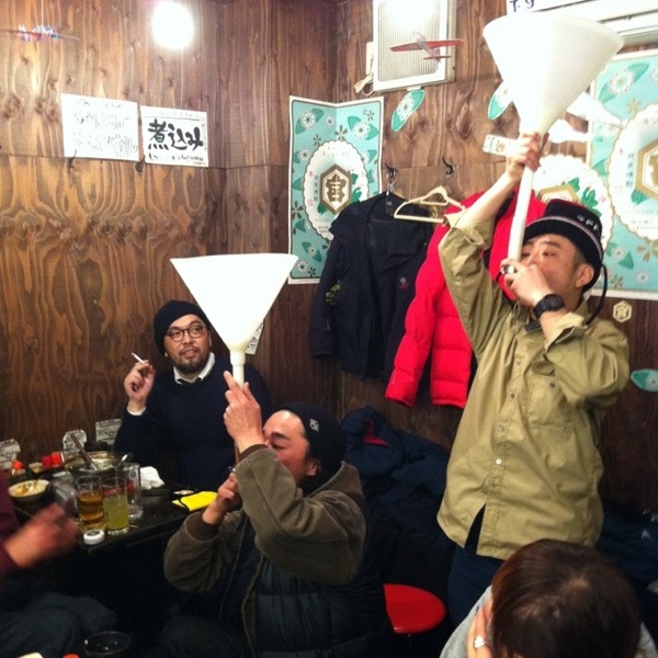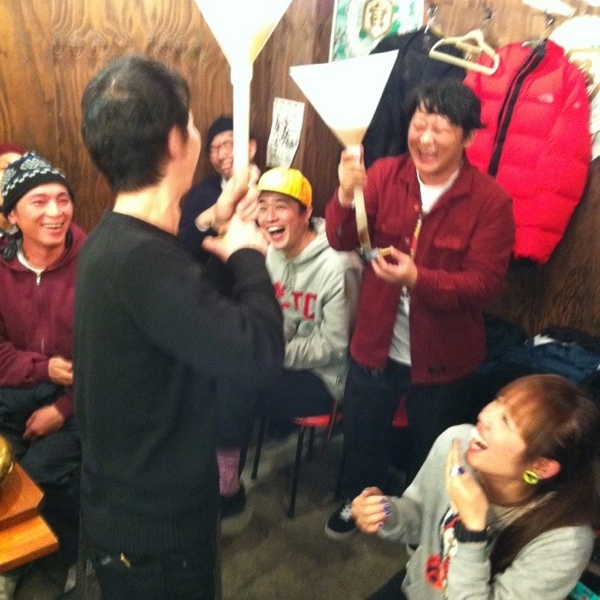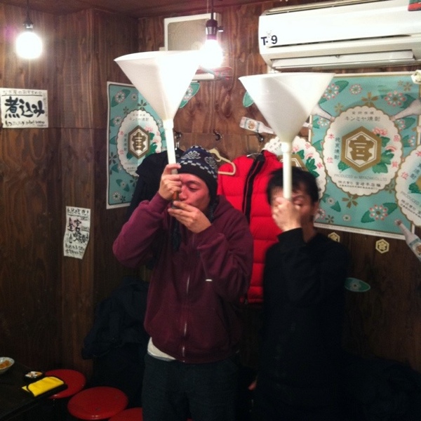 先日、T19の忘年会の終盤で、突然Beer Bongの撃ち合いに。