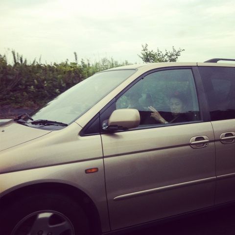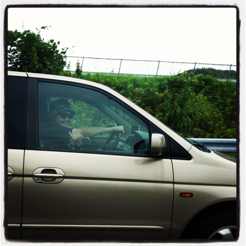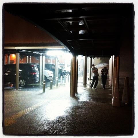 行きの高速で、シャワーのような豪雨に直撃。まったく前の見えない状態。