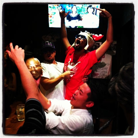 写真でブチ上がってるのはバーのオーナーさんです。w