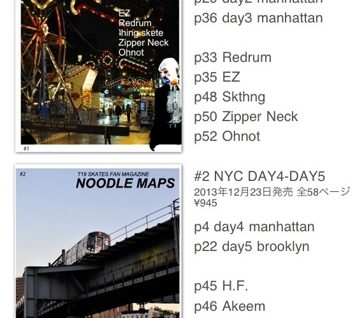 T19 FUN ZINE 「NOODLE MAPS」にいろいろと出させてもらってます。 この二冊は、前にT19でニューヨークに行った時のもの。 シンゴくんやアンドリュー、僕のスケー…