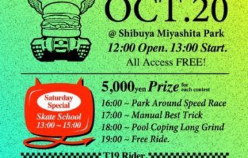 今週20日の土曜日に、渋谷の宮下スケートパークでT19のイベントが開催されます。