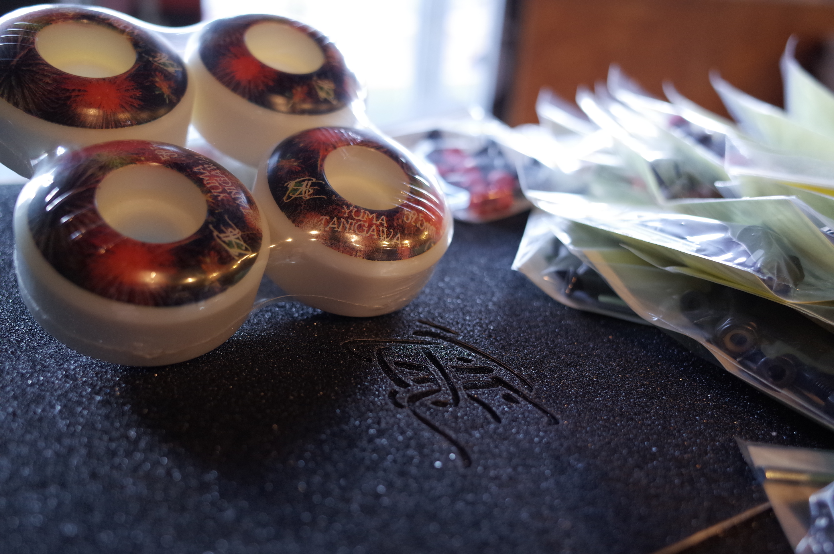 現在はウィール、グリップテープ、ビスなど展開しております。
