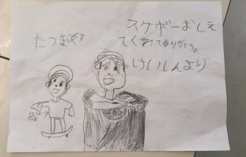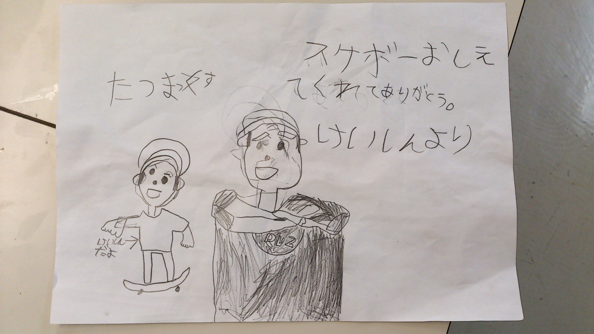先日スクールに参加してくれた「橋本 けんしん君」から、なんと手紙を頂きました!!内容は似顔絵えを書いてくれていて嬉しかったです!!