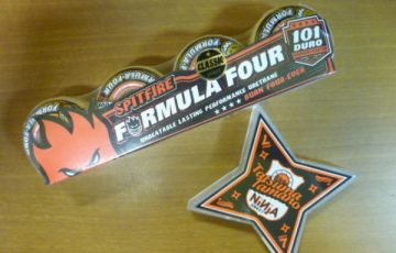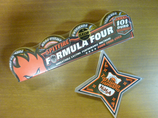 「SPIT FIRE」の最近発売された最強のウィール「FORMULA-FOUR 101DURO 」。普段、自分はウィールを3週間もたずに変えてしまうのですが、このウィールにしてからなんと一ヶ月は楽勝にもつようになりました!!使った事がない方はかなり損していますので是非一回使ってみて下さい!!