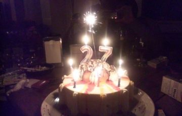 28日の夜は夜中の12時なった瞬間にお店の電気が消え、サプライズケーキが登場!!まさかの嬉しさのあまり男泣きをしてしまいました。。。本当にありがとう!!