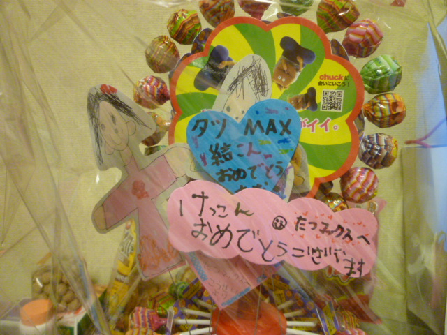 そしていつも参加してくれているキッズから結婚祝いの手紙と特大のチュッパチャップスセットを頂いちゃいました!!本当にありがとう!!!!!