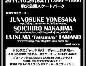 今月29日に駒沢公園スケートパークにて「KOMAZAWA SK8 JAM」を開催します!!今回は「米坂 淳之介pro」「中島 壮一郎pro」後は「Tatsumax」など他にも色んなスケーターが参加する予定になっています!!時間は午後1時~3時まででPro,Ama対抗skate game,Hi-ollie gameなども開催するので皆さんの来場をお待ちしてます!!もちろん参加費は無料です!!