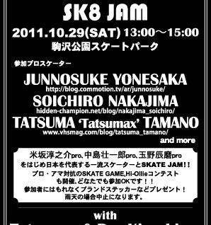 今月29日に駒沢公園スケートパークにて「KOMAZAWA SK8 JAM」を開催します!!今回は「米坂 淳之介pro」「中島 壮一郎pro」後は「Tatsumax」など他にも色んな…