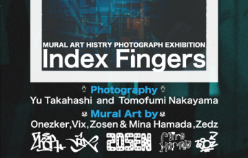 スプレー缶アート、デザイナーに写真家、彼らのクリエイティブの全ては、独創性に富んだアイディアへ経験値を掛け合わせ、スプレーノズルを押す、シャッターを切る、マウスやタブレットペンをクリックする『人差し指』から全てが生まれます。そんな彼らの原動力の一つである『人差し指』にインスパイアされ、命名されたリシャッフル展示【Index Fingers】は、約一カ月に渡る展示会期を予定しています。写真、アートアーカイブ作品はモチロン、オランダ人アーティスト『ZEDZ/ゼッズ』が手掛けた、『高さ約4m × 幅30m』の巨大ミューラルアートを間近で体験してみて下さい。