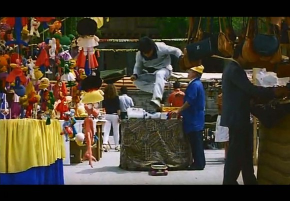 STORY : ジャッキー・チェンの海外進出第1弾作品。小粋な町並みを臨むパン屋の2階に下宿するトーマスといとこのデビッドは、町なかの公園広場にキッチン・カーを止め、ハンバーガーやコーヒーを売って日々暮らしていた。今日もスケートボードを軽快に乗りこなして注文を取るトーマスと、車中で料理をこなすデビッド。そんな彼らのもとにある日突然、シルビアという女性が助けを求めて逃げ込んできた……。 ジャッキー・チェンを始め、ユン・ピョウ、サモ・ハン・キンポーらが総出演している本作は、時速70キロで疾走するスケートボードに乗ってのバトルや、激烈なカー・チェイスなどのアクション・シーンに加え、彼ら特有のコミカルな演出もしっかりと押さえてあって、まさにジャッキーらしい作品に仕上がっている。そしてこの作品で特に注目すべき点として挙げたいのは、ラスト近くのジャッキー・チェンとユン・ピョウのそれぞれ1対1での格闘シーン。トリックなしで正真正銘の肉弾戦で行っている、ジャッキー・チェンと格闘技の王者ベニー・ユキーデとの戦いや、空手チャンピオンのキース・ヴィタリとユン・ピョウとの戦いには、演出なしの本物の格闘だけあってその迫力には目を見張るものがある。このシーンを観る為だけに本編を観ても決してソンはしない、ジャッキー・チェンのアクションが光る1本である。(allcinemaから抜粋)