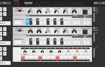 ブラウザ上で音楽を作ることができるAcid Machineなるサイトが面白いです。