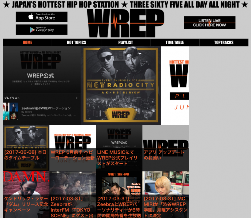 ラッパーのZeebraさんが手がけるHip-Hop専門のインタネットラジオ局のWREP。