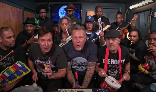 学校にある楽器で、MetallicaがThe Rootsとともに“Enter Sandman”を演奏。 お茶目です。 ちなみにこちらは1991年にMetallicaがモスクワで演奏…