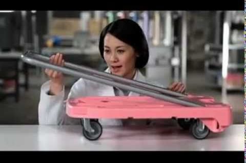 「トラスコ中山 CM 新型こまわり君 スケボー篇」より 台車でフロントインディーをかます女性博士を御覧ください。 この台車が欲しい! _K.H
