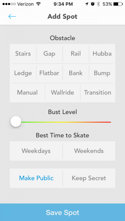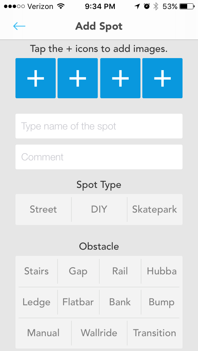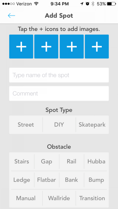 そして、スポットを投稿したい時「Add Spot」をタッチするとこうなる: