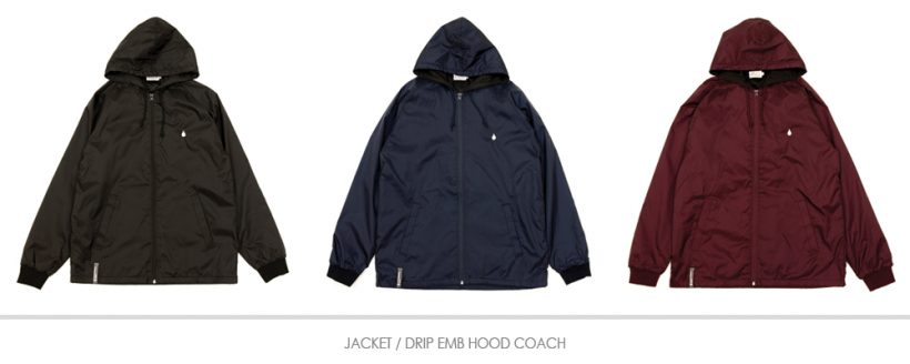 スケーター定番のコーチジャケットはノーマルタイプとジップフードタイプと厚めのキルティングタイプの3型。