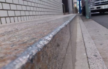 「大理石の縁石の角は鋭すぎるから、僕らが滑るとちょうどいい具合に仕上がるよ!」