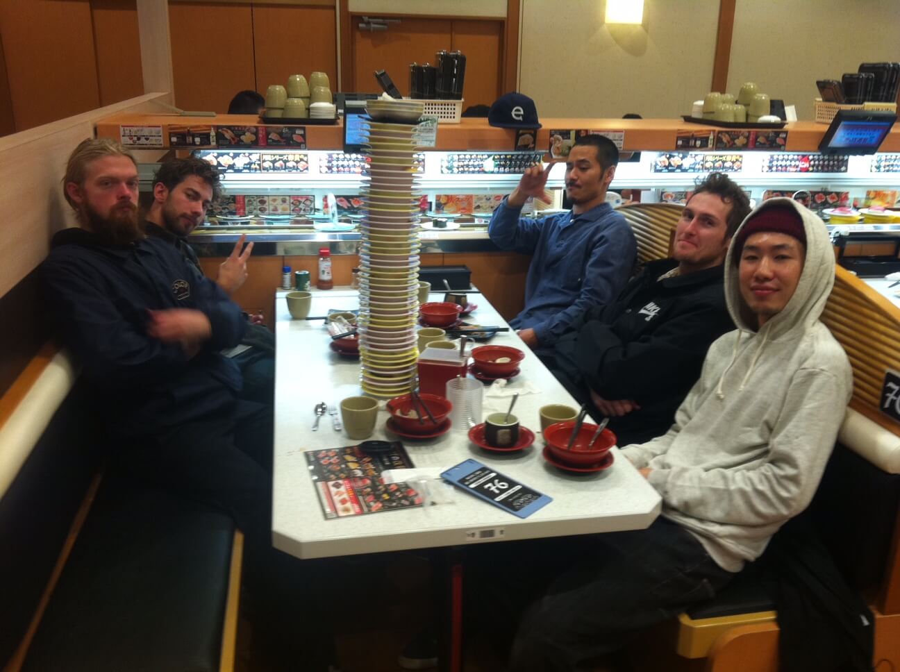 夜は明け、試写会当日。早めに会場入りし、みんなで準備をしていると次第にスケーターが集まり、やがて会場には溢れんばかりの観客が押し寄せていた。中には有名スケーターも数多く来てくれたみたい。シアターでは立ち見客が出るほどの盛況ぶりだった。試写会中は歓声や拍手が止むことなく、僕のテンションも最高潮に。上映後にコリンがステージに立ち、作品の軸となるパートを担当したテイラー・ナロキ、マット・タウンと僕を呼びよせ、コリンとともに4人でステージに上がった。コリンが「彼らはこれでシグネチャーデッキを出し、プロに昇格したぜ!」(イギリスの試写会ではクリス・ジョーンズもプロに昇格)と僕たちを紹介してくれ、シアターを出た後もいろんなスケーターに祝福の声をかけてもらった。