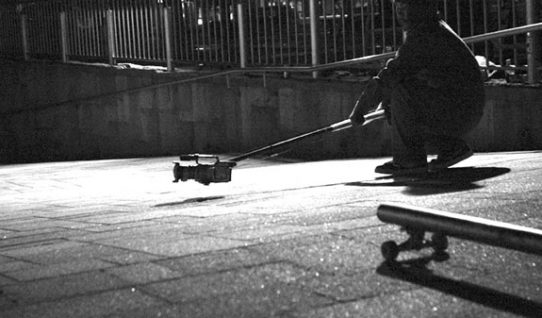 都心の深夜、スケーターとクルーズしながらの撮影が一番、心弾みます。何が起こるか分からない、漠然としたスポットのイメージを抱いてストリートフィルミングは最高です。しかし、深夜のスト…