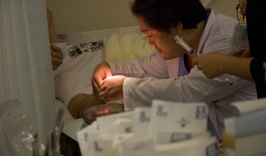 発電機や手持ちのライトを使って撮影していて、気がつくと照明が必要ないくらいに空がぼんやりと明るくなってきていた。帰り道、寝ぼけ顔のスーツ姿のサラリーマンとすれ違いながら、何を食っ…