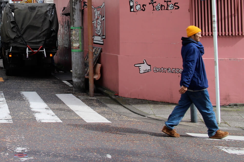 ランプのピボットフェイキーが苦手で、練習の時に子供の頃に見たJesseくんの動きをイメージして練習してましたね。今でもフウライ堂に来る若いスケーターとも気軽に話したり、スケートや音楽とかも新しいものをチェックしてて、ほぼ自分は滑らないけどスケート好きで、芯はスケーターなストリートの人だなって思いますね。