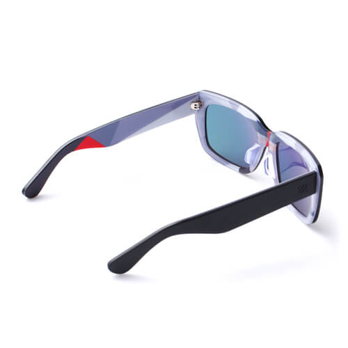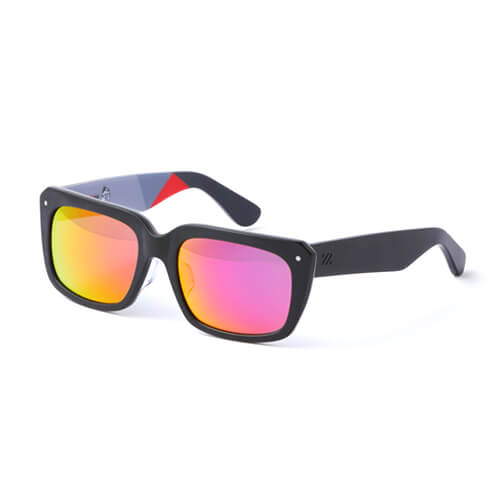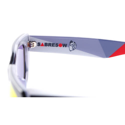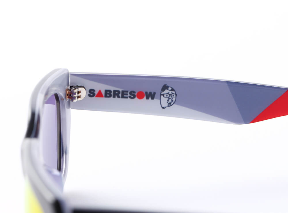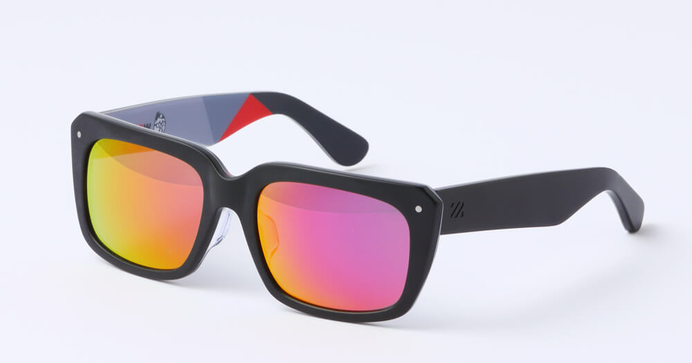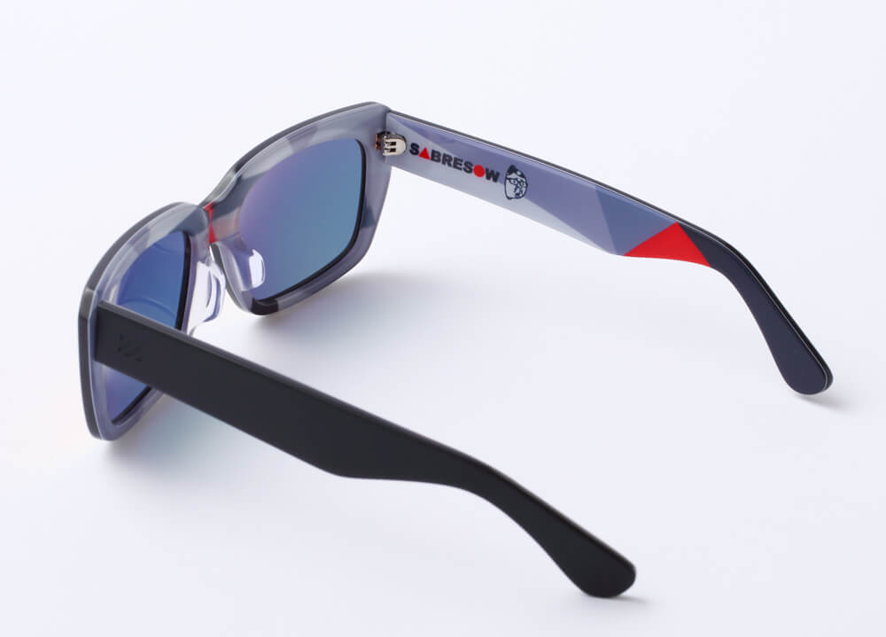 ベースフレームには直線的で肉厚なフレームが重厚感を演出するシルエットを採用。オールブラックの表面とは打って変わって、内側にグレーのグラデーションとキャラクターをプリントしたデザインがさり気なく主張する。カラーヴァリエーションはBlack/Grey Lens、Matt Black/Red Mirror Lensの2色展開。SABRESOW 各色ともに¥15,120