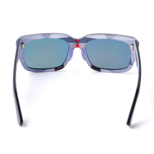 E サングラスのデザインって初めてだし、描くところが本当に少ないからどうしようかなって思いましたね。でも自分の描くキャラクターを押してもしょうがないから、「柄かな」と。で、自分が好きな色、グレーのグラデーションを使ってできないかなと思って取り組みました。グレーから黒へのグラデーションが好きなんですよ。なので、そのグラデーションを内側にバシっと入れました。