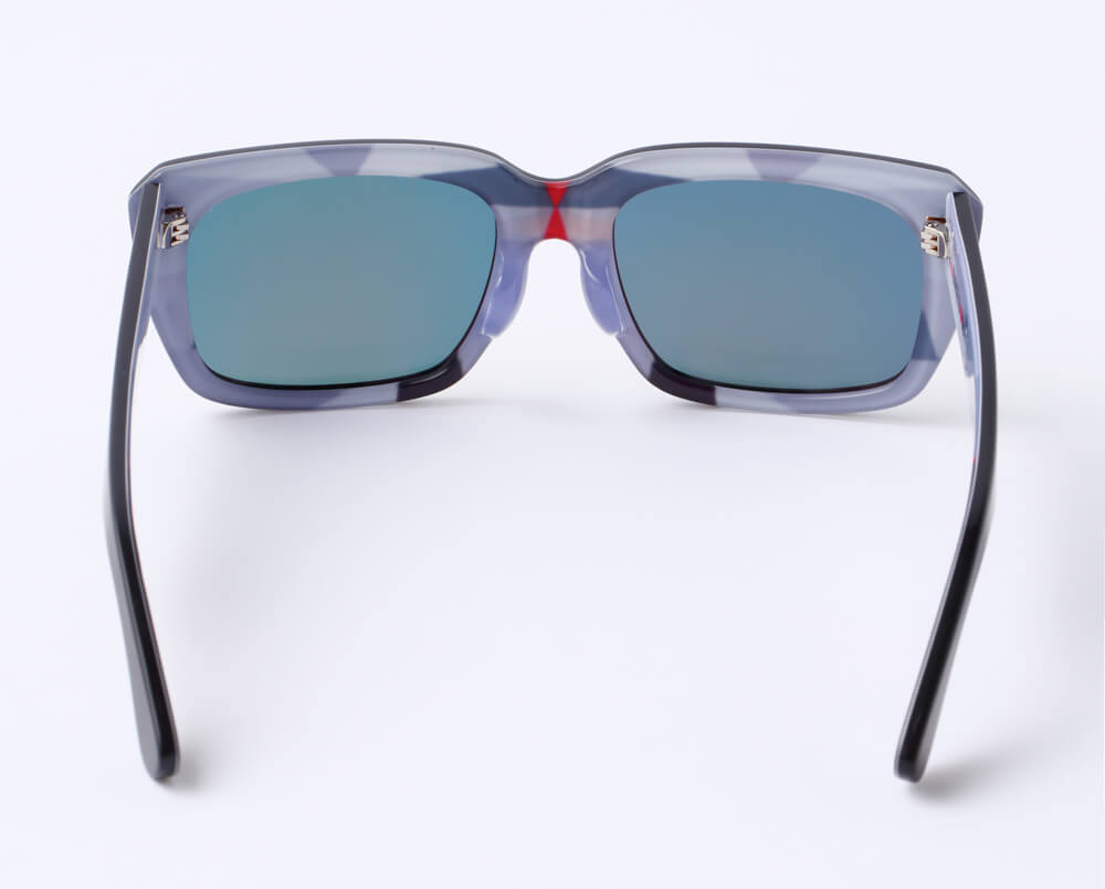 E なんか「学ランの内側に刺しゅうを入れるみたいな…」、そういう感じですね。派手なアイウェアってぱっと見はかっこよかったり、モノとして見る分にはいいんだけど、いざ使うとなると結局あんまりかけなくなっちゃうから、なんとなく内側だけ柄が入ってる方がいいかなって。表面は黒で統一されてるけど、裏は派手な感じですね。粋ってやつですかね。