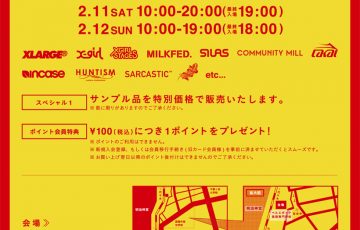 LakaiやXLARGE®、incaseなどを取り扱うB’s Internationalのファミリーセールが2月11日(土)、12(日)の2日間で開催。