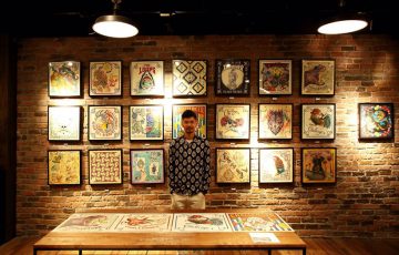 これまでに手掛けたバンダナやアーティストの合作品、ブランドとのコラボなど数多くの原画を展示。