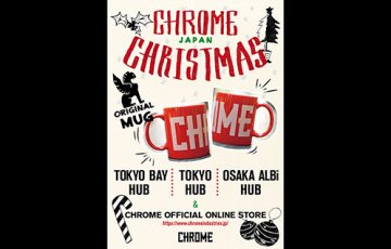 CHROMEのTOKYO HUB、TOKYO BAY HUB、OSAKA LABi HUBと公式オンラインストアにて税込み1万5千円以上を購入するとオリジナルマグカップをプレゼント。