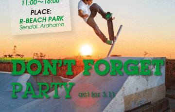 阿部直央が中心となって行われる東北復興支援イベント“Don’t Forget Party”の第4回が3月7日(土)に開催される。東日本大震災で被災した子どもたちへのスケートレッスンやコンテスト、デモにBBQといった盛りだくさんな内容。