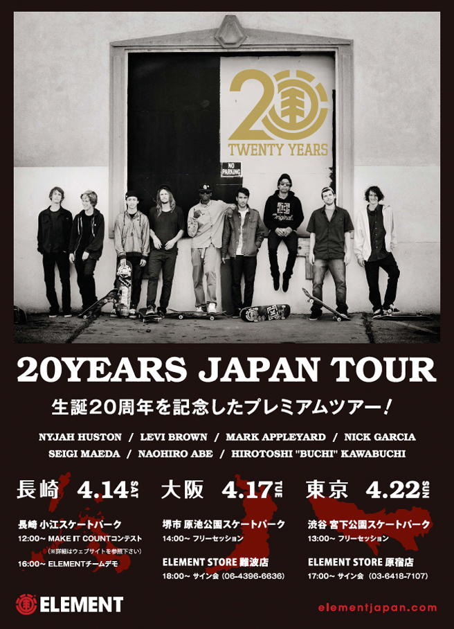 ブランド発足20周年を記念して、Elementによるジャパンツアーが開催される。