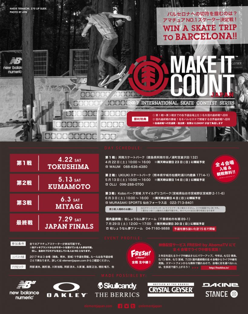 Elementが主催するグローバルなアマチュアコンテストシリーズ、Make It Count 2017の国内戦の日程が決定。