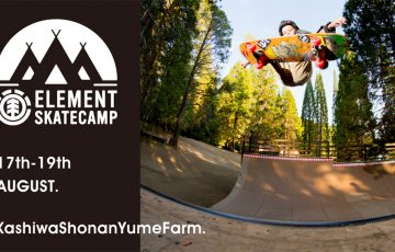 8月17日(水)〜 8月19日(金)の3日間にわたり、スケートパークとキャンプ場が隣接する千葉の柏しょうなん夢ファームにてElement主催のスケートキャンプが開催される。