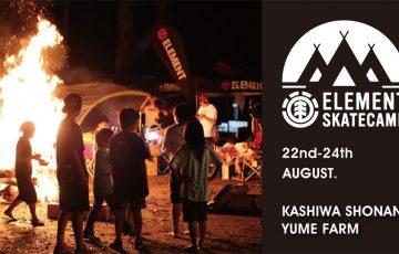 8月22日(火)〜 24日(木)の3日間にわたり、スケートパークとキャンプ場が隣接する千葉の柏しょうなん夢ファームにてElement主催のスケートキャンプが今年も開催。