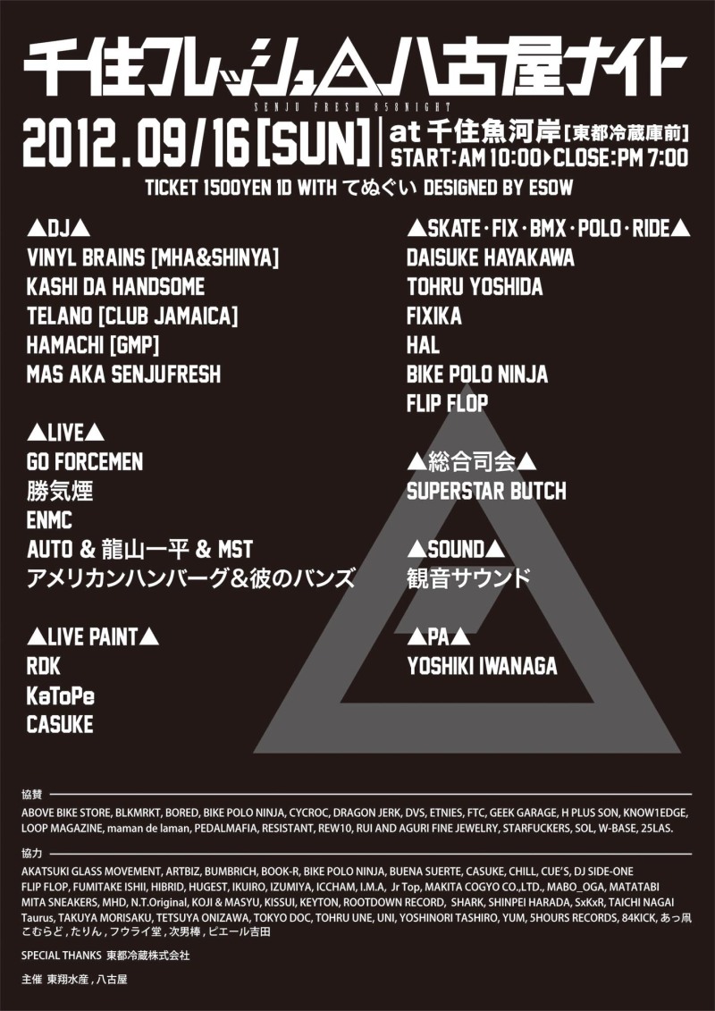 9月16日(日)に北千住の千住魚河岸は東都冷蔵庫前で催されるブロック・パーティ“千住フレッシュ八古屋ナイト”にて
