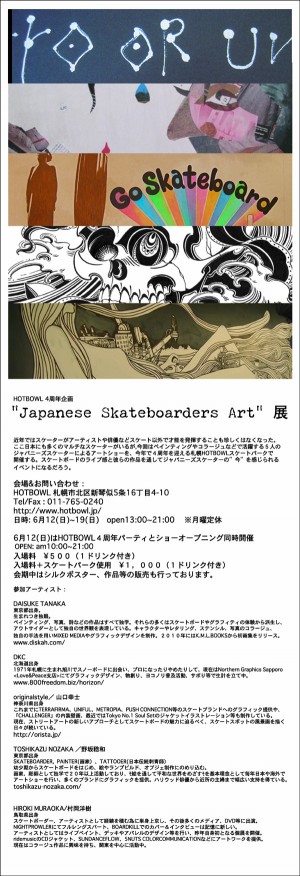日本人スケーターによるアートショーが北海道のスケートパークHotbowlで開催される。