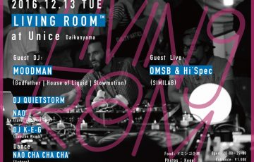 DJがフロア中央のソファに座り、音楽を楽しむ観客に囲まれてプレイを行うというDJ Quietstormらによる画期的なイベントLIVING ROOM™が12月13日(火)にUnice代官山で開催。