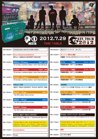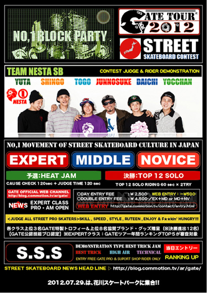 Gate主催のコンテストシリーズ、Gate Tour 2012の開幕戦が来る7月29日(日)に静岡県の花川スケートパークで開催される。