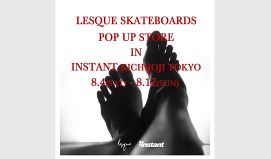 Lesque Skateboardsのポップアップストアが8月4日(土)~12日(日)にかけてインスタント吉祥寺にて展開。 東京発の実力派デッキカンパニーの豊富なラインナップを吉祥…